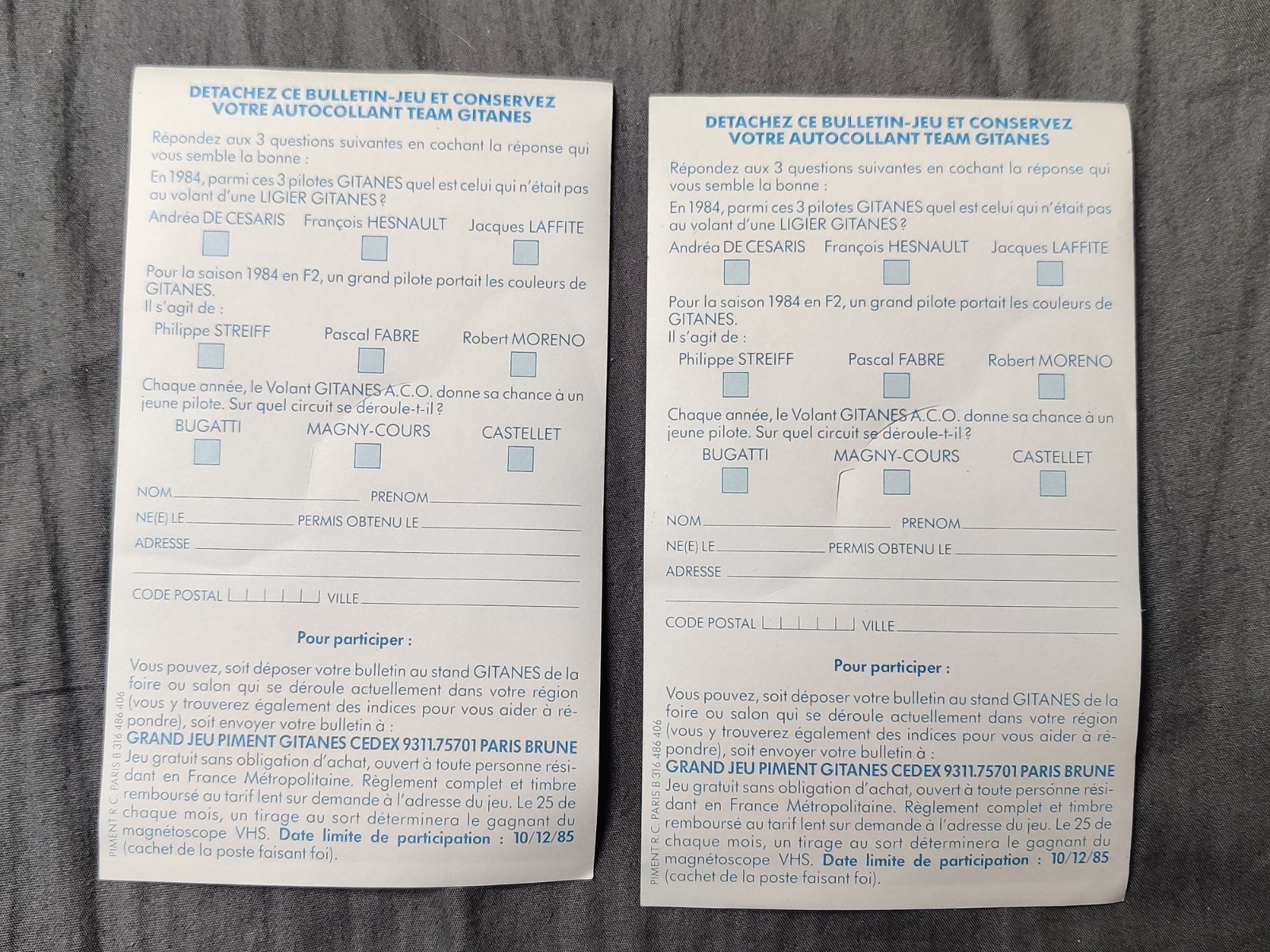 La partie de l’autocollant faisant référence au concours se retire, l’autocollant en lui-même est le pilote avec l’indication team gitanes.
