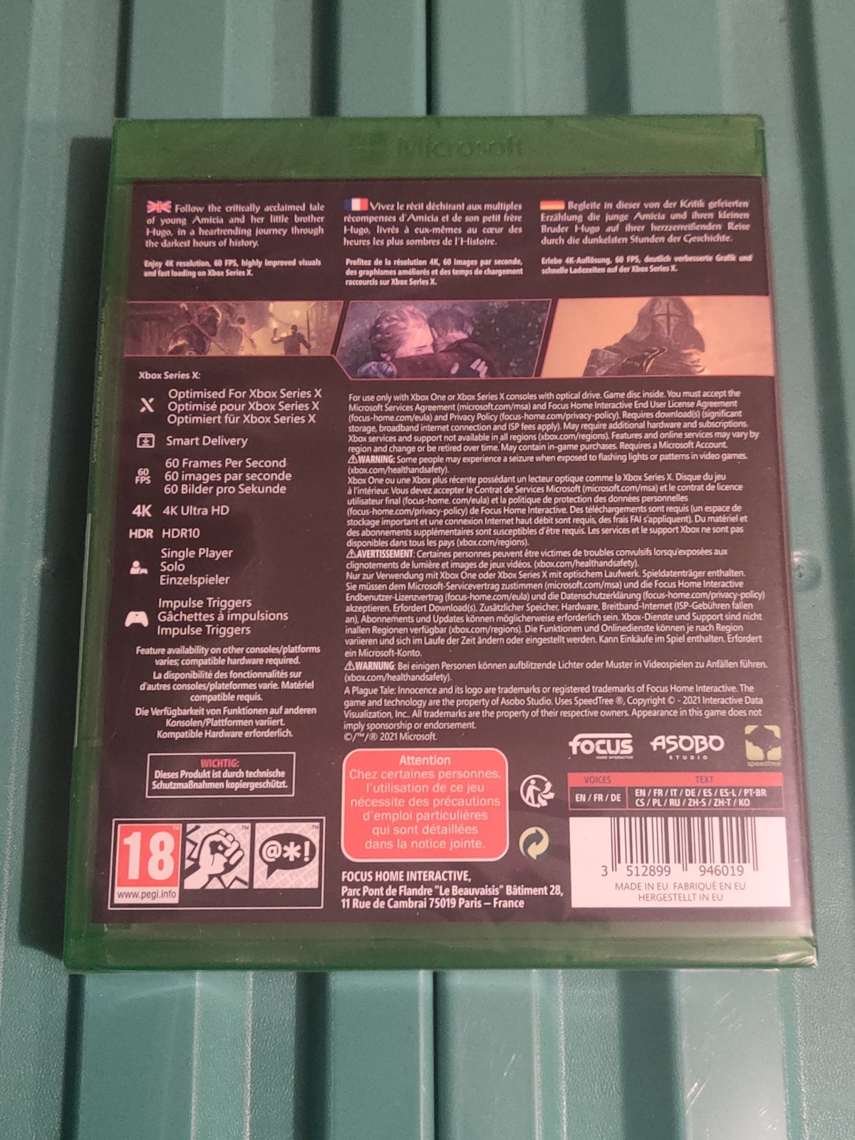 Je mets en vente le jeu A Plague Tale Innocence Pour Xbox One ou Xbox one Series X.