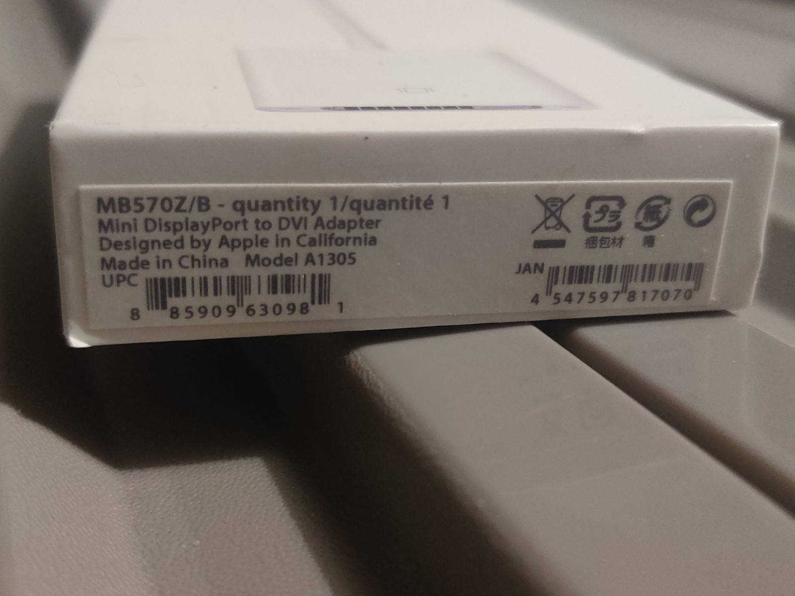 Je vends un adaptateur officiel Apple Mini DisplayPort vers DVI, modèle MB570Z/B (A1305).