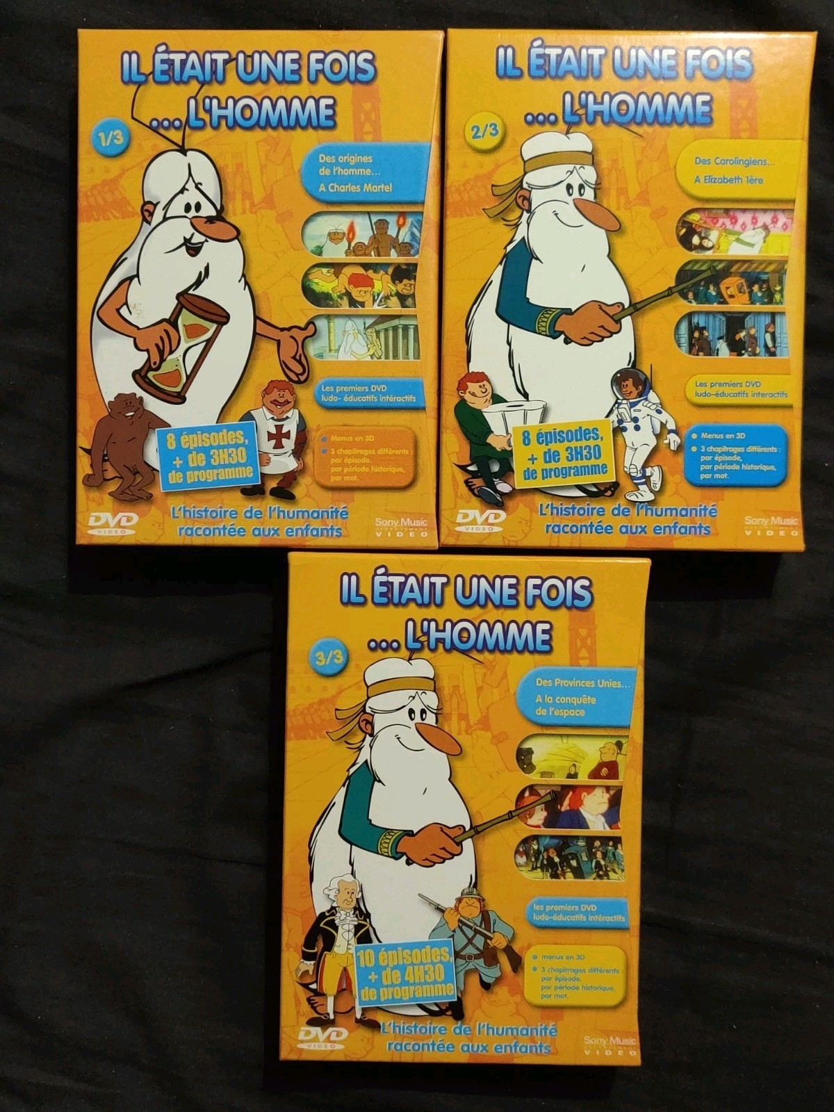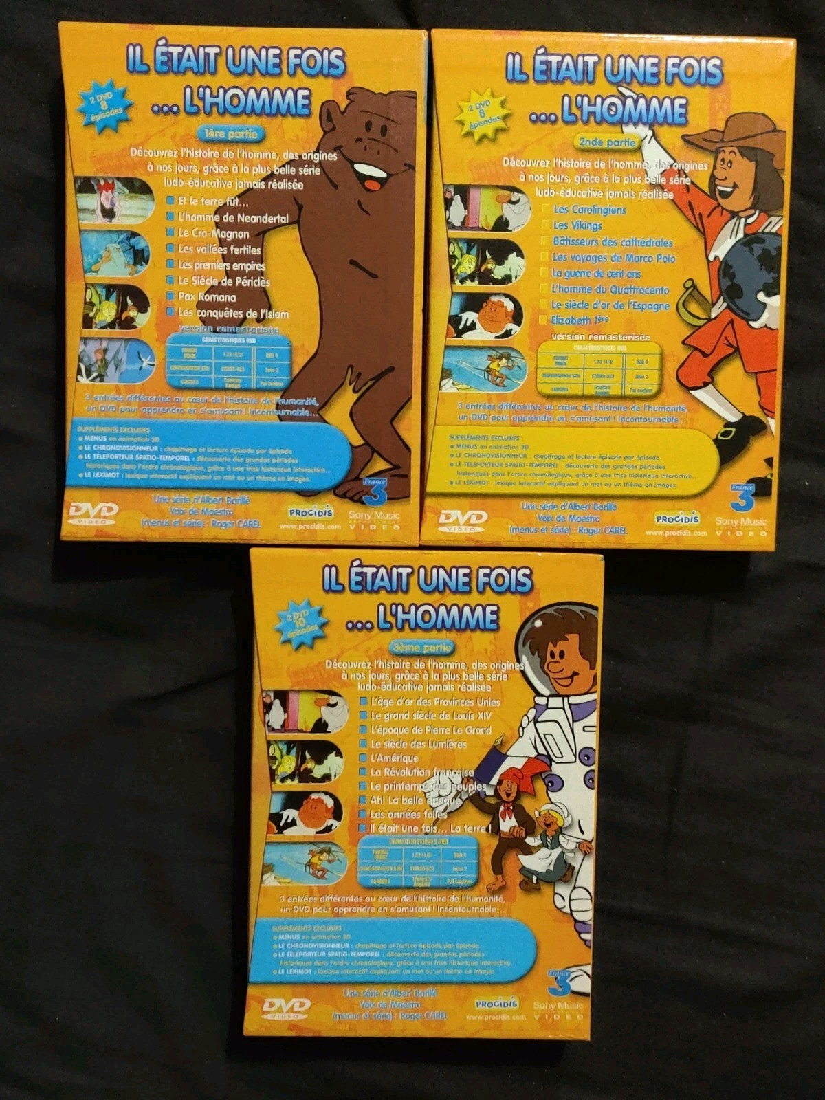 Je mets en vente 3 Coffrets pour un total de 6 DVD recouvrant l’Intégrale De La Série IL ETAIT UNE FOIS L’HOMME.