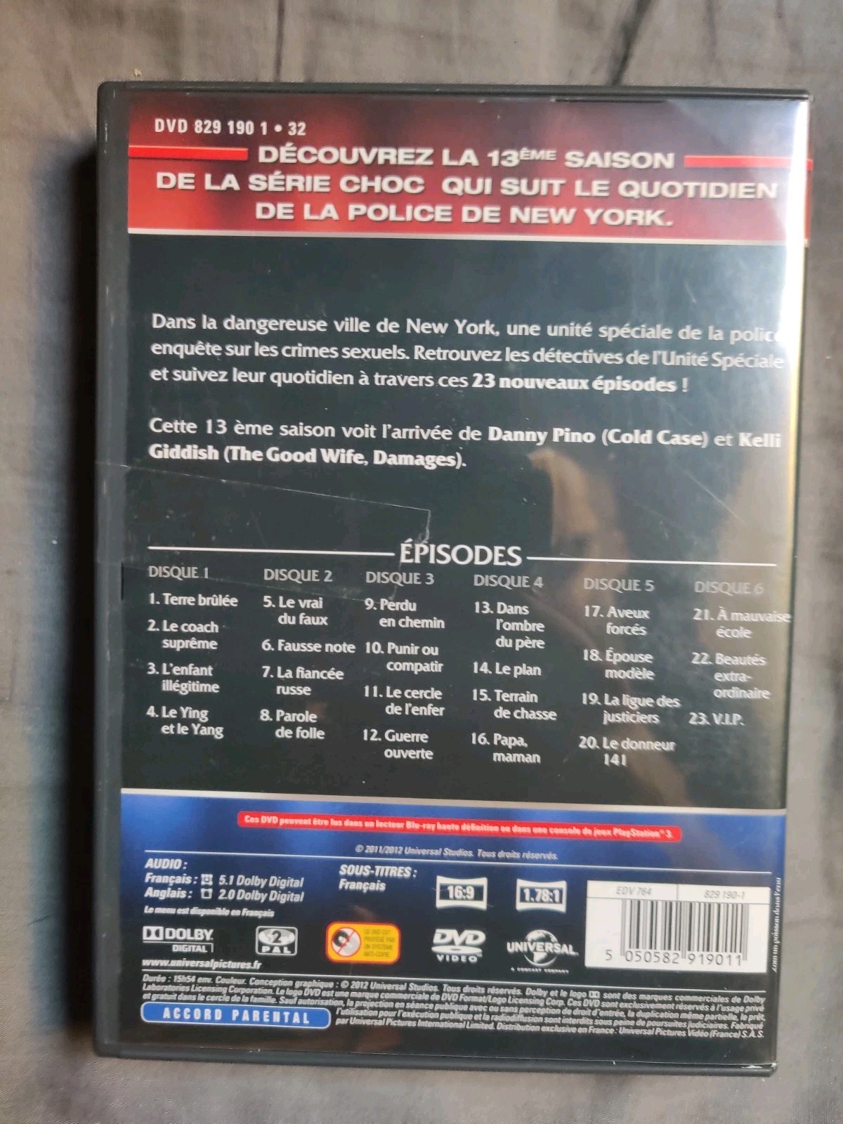 Je mets en vente un Coffret 6 DVD New York Unité Spéciale recouvrant l’intégrale des 23 épisodes de la Saison 13.