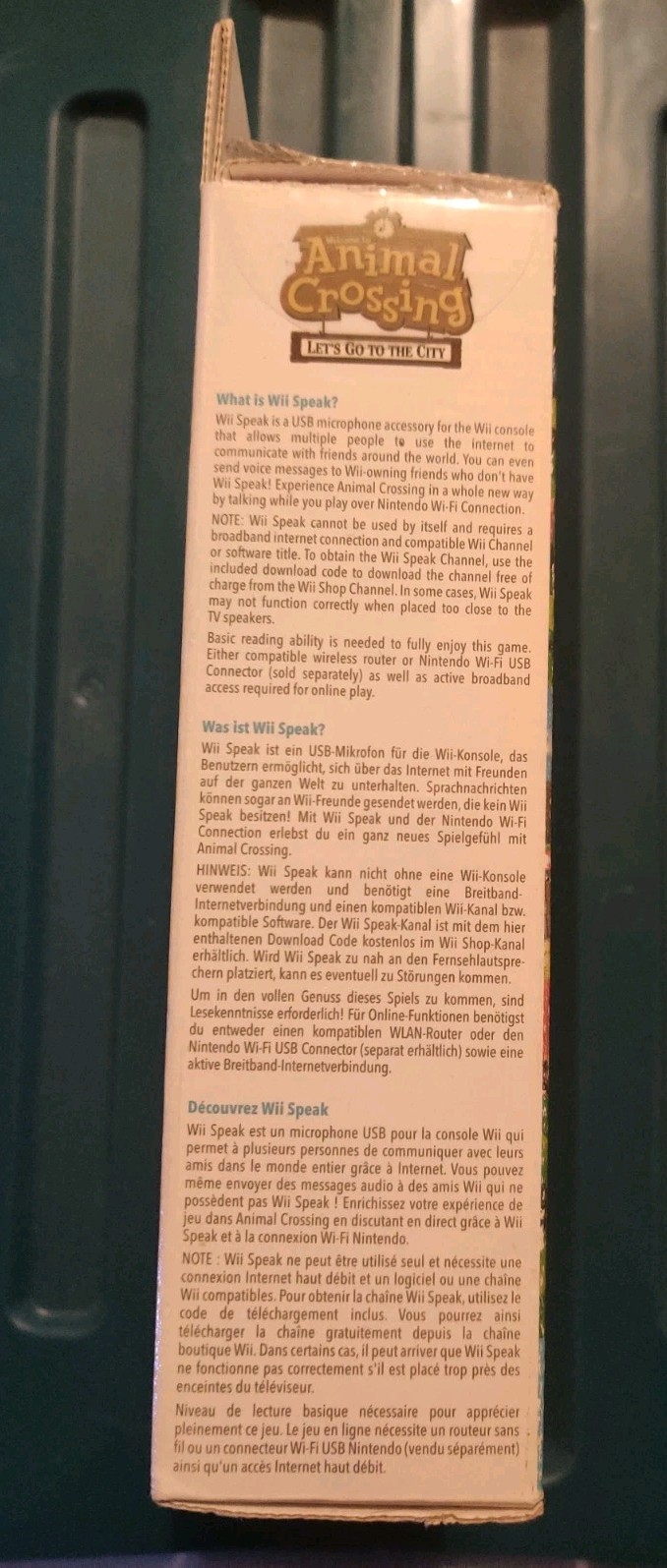 Je mets en vente le Coffret Animal Crossing let’s Go to the City avec l’accessoire Wii Speak pour Nintendo Wii.
