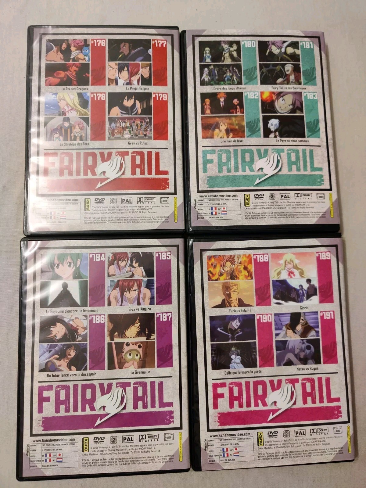 Je mets en vente 4 DVD de la Série Fairy Tails soit les Épisodes 176 à 191.