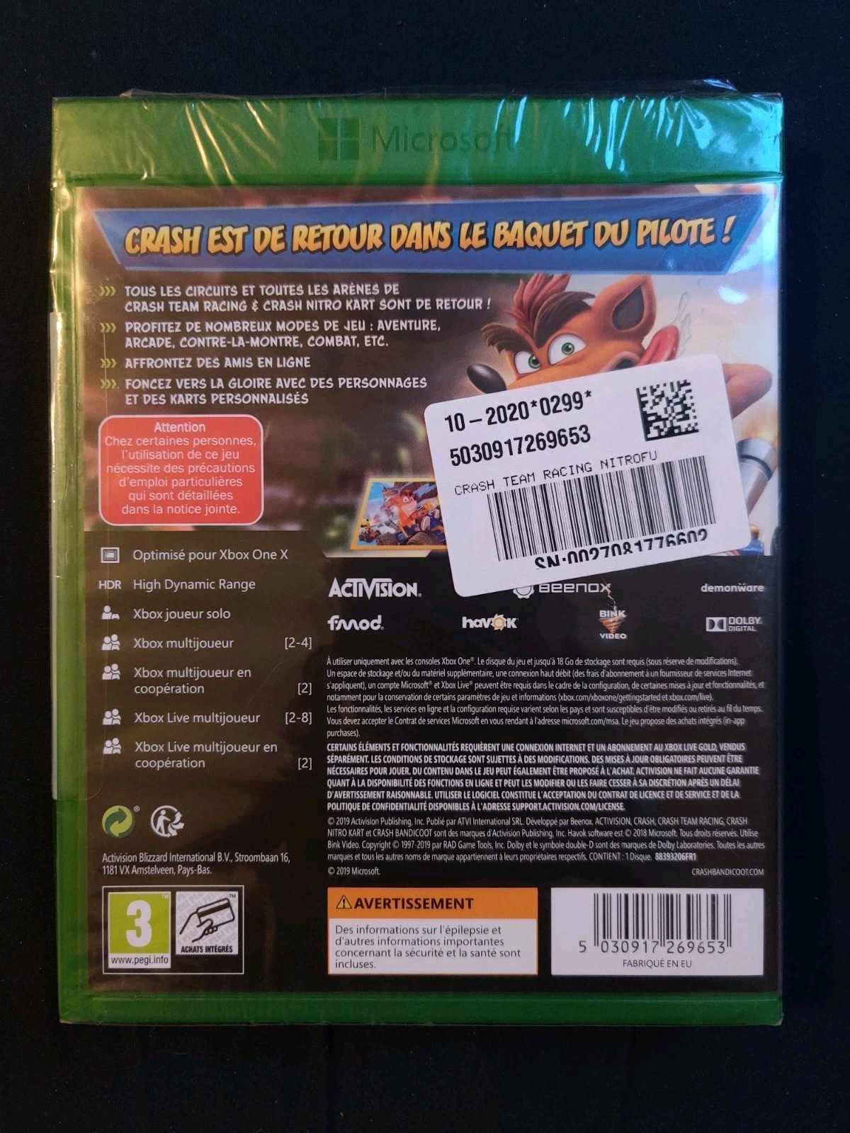 Je mets en vente le jeu CTR Crash Team Racing Nitro Fueled sur Xbox One.