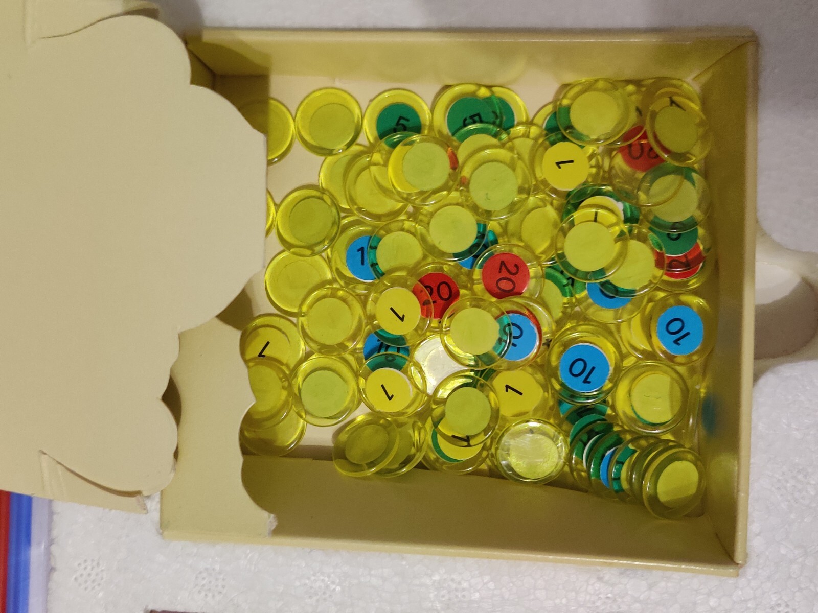 – La boîte contenant les jetons ne tient plus que d’un côté.