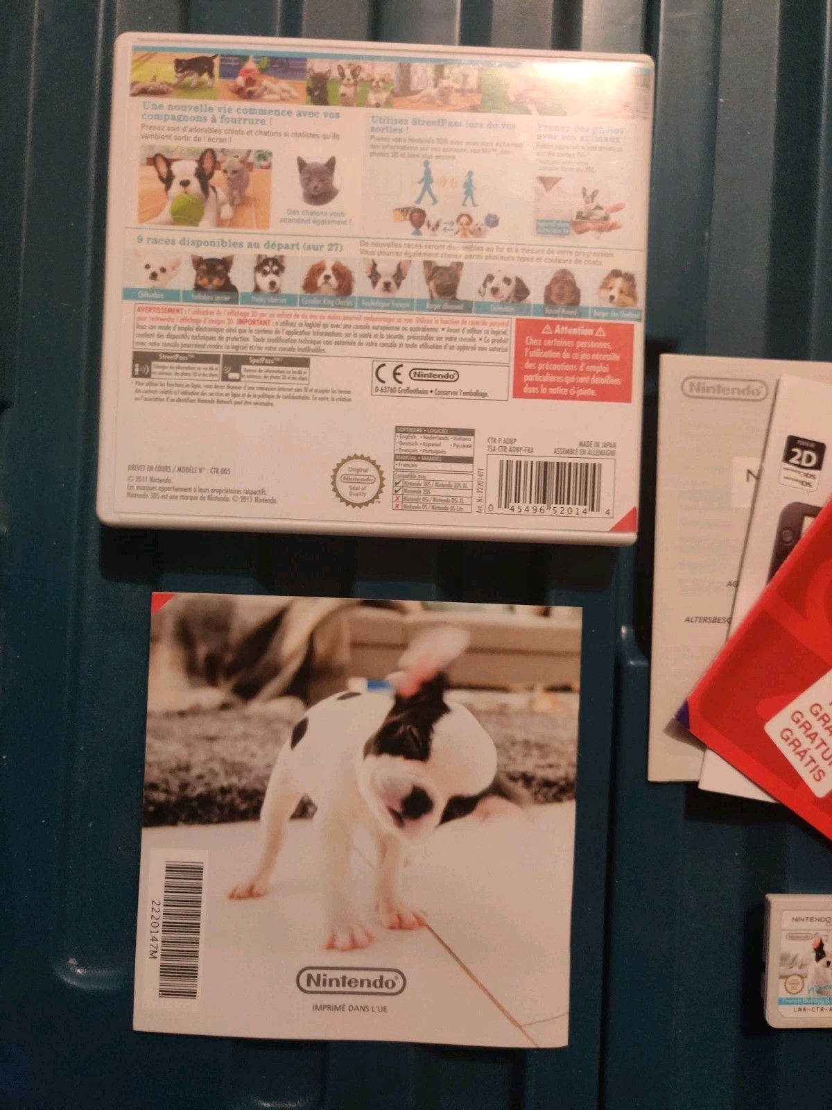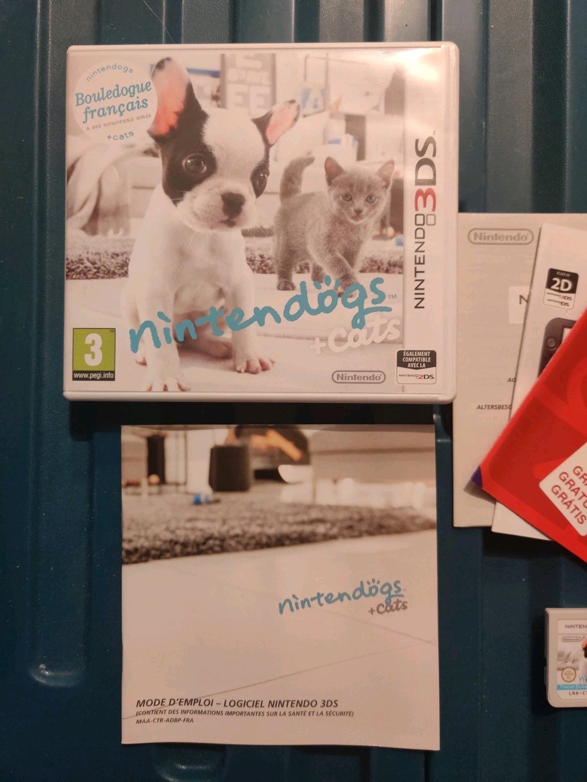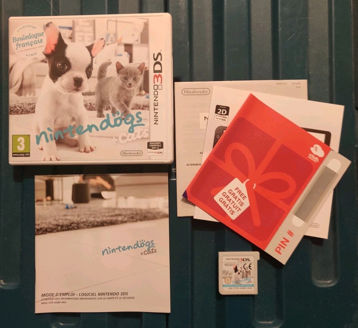 Je mets en vente le Jeu Nintendogs + Cats version Bouledogue Français Pour Nintendo 2DS ou 3DS. Le jeu est Complet avec les points vip non grattés.