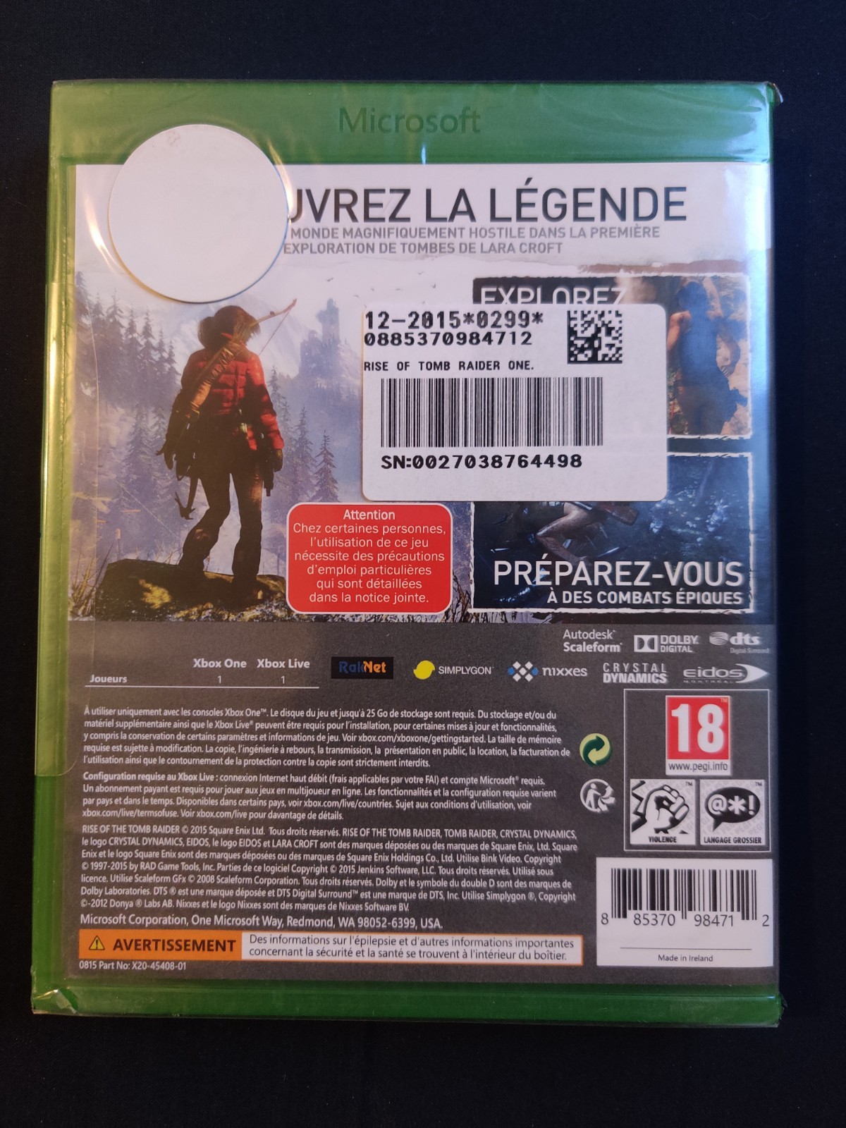 Jeu Rise Of The Tomb Raider Sur Xbox One Neuf sous blister Version Française
