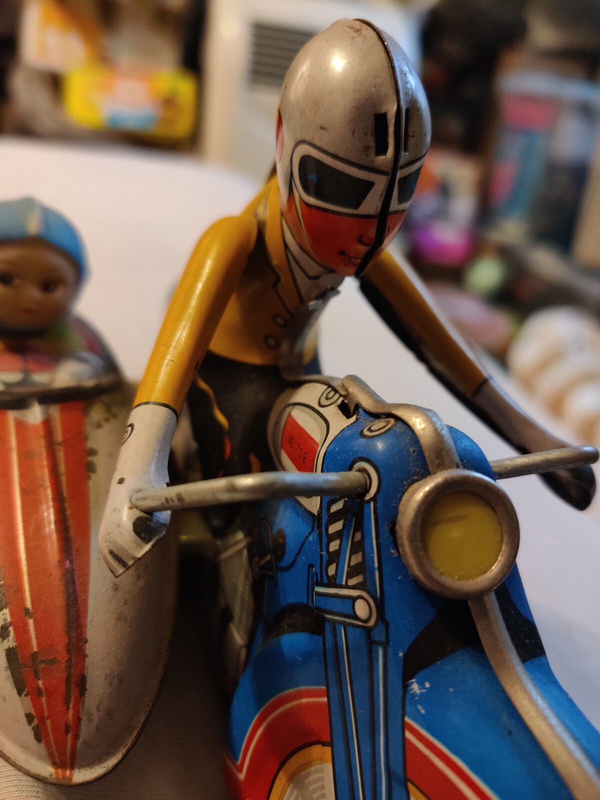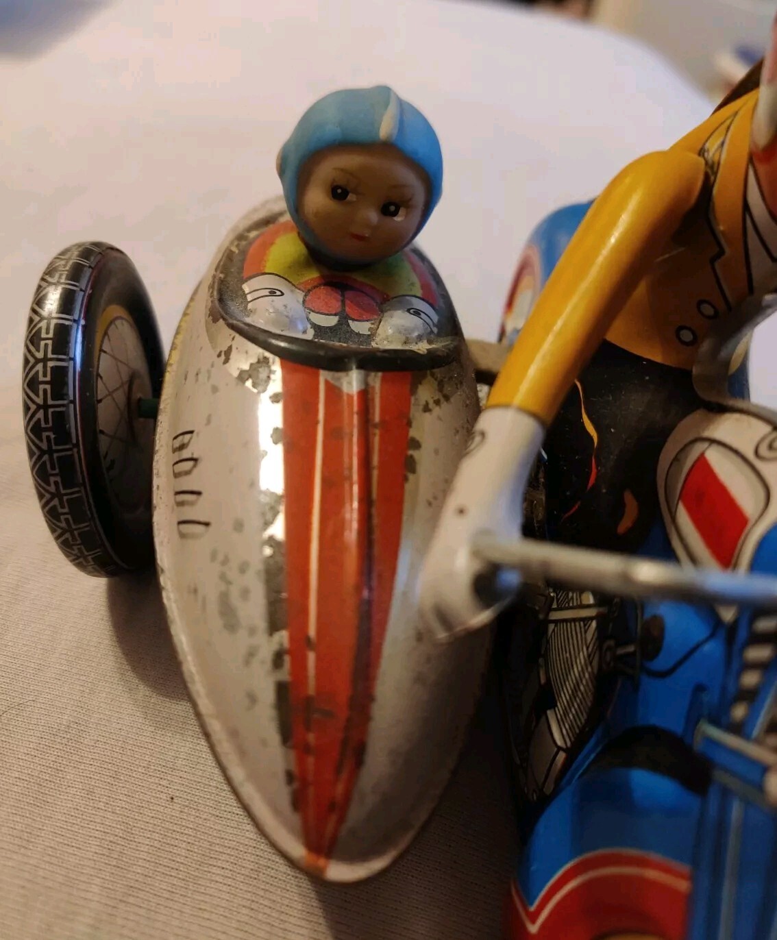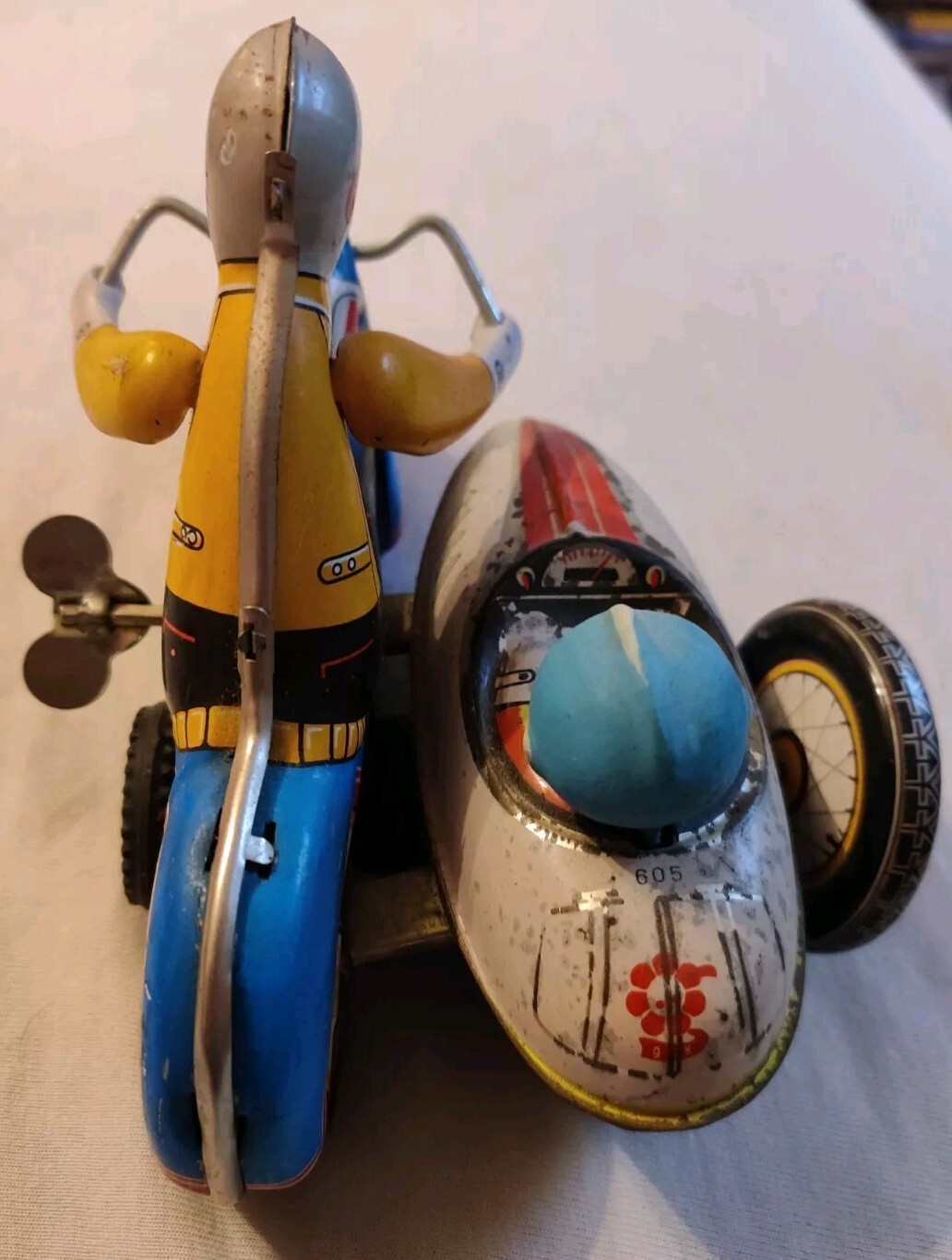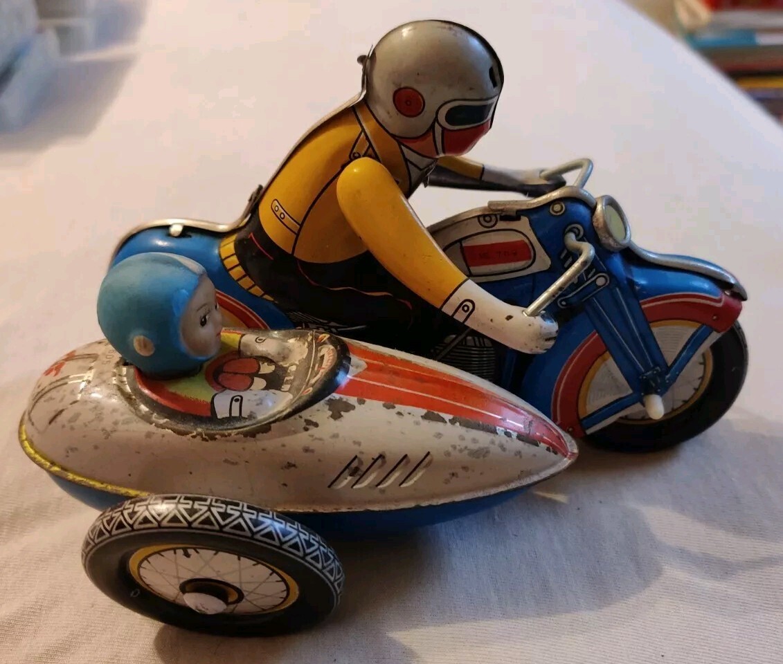 Je mets en vente un jouet Moto Side Car avec Remontoir Mécanique En Tôle.