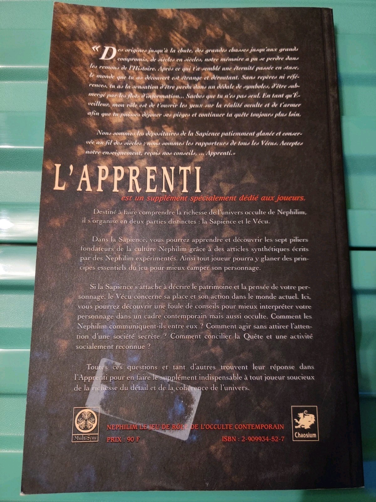 Je mets en vente le Livre supplément du jeu de rôle de l’occulte Nephilim L’apprenti.
