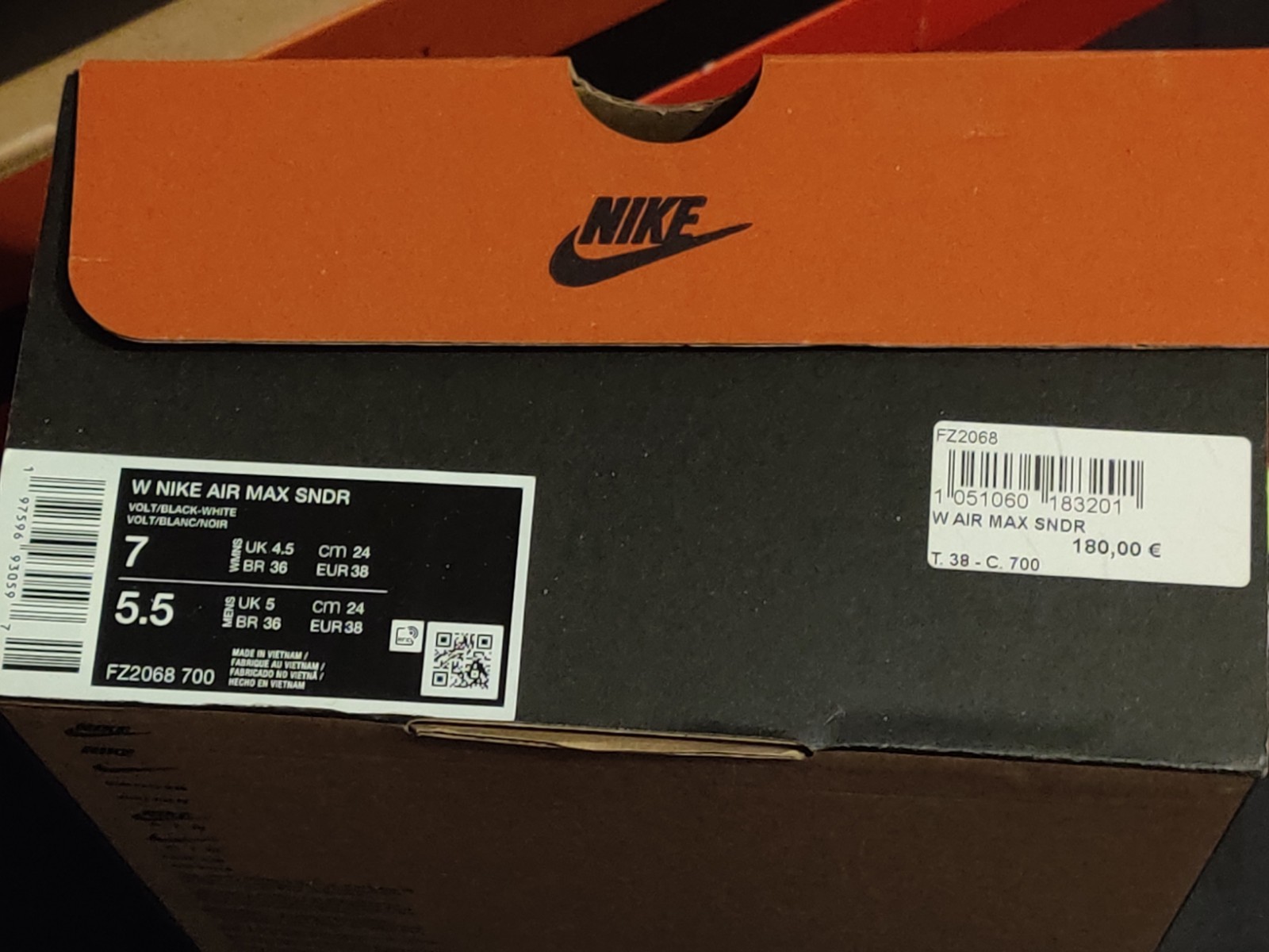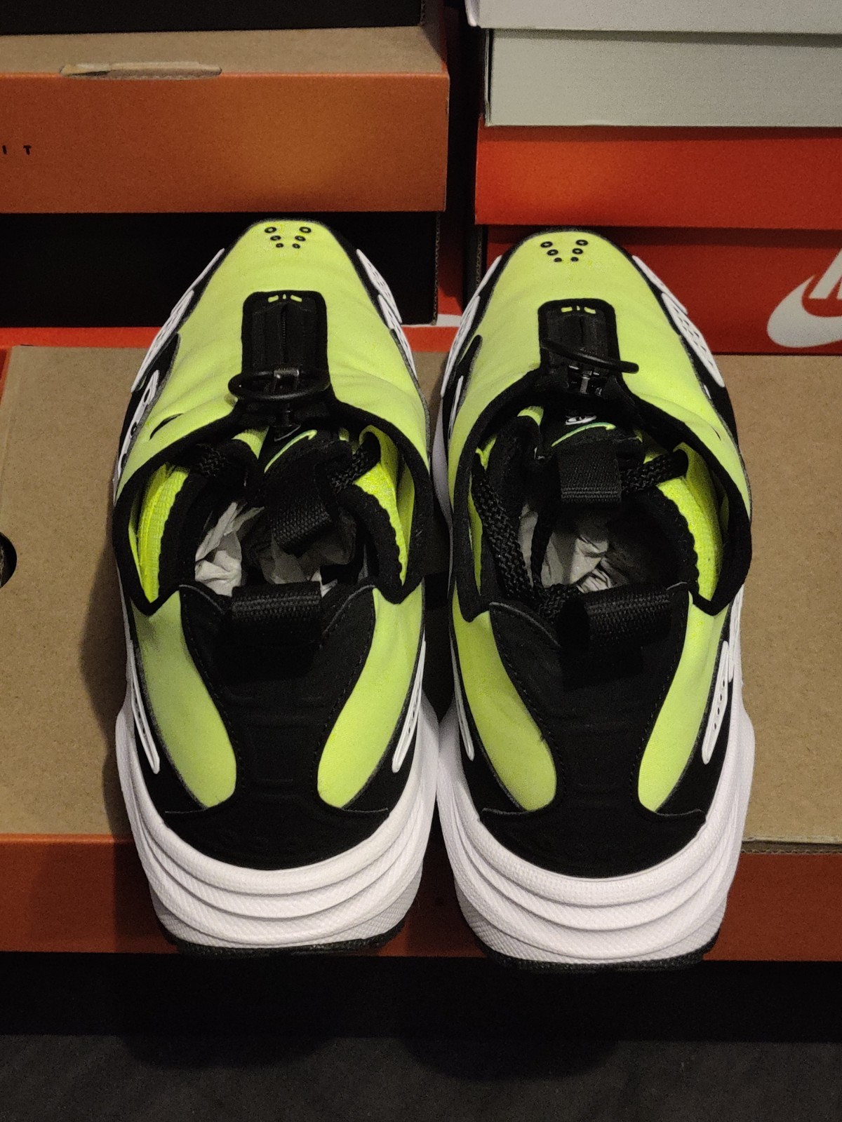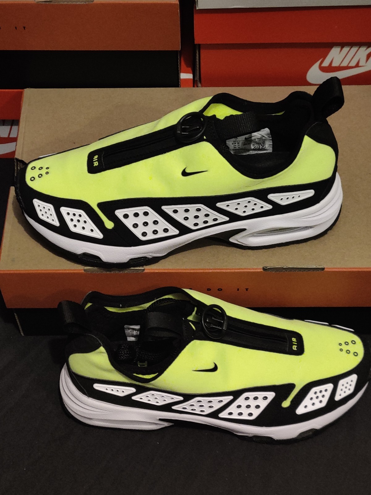 Je mets en vente des Nike Air Max Sunder SNDR Femme Volt Blanc Noir en Pointure Eur 38 UK 4.5. Elles sont neuves avec leur boîte.