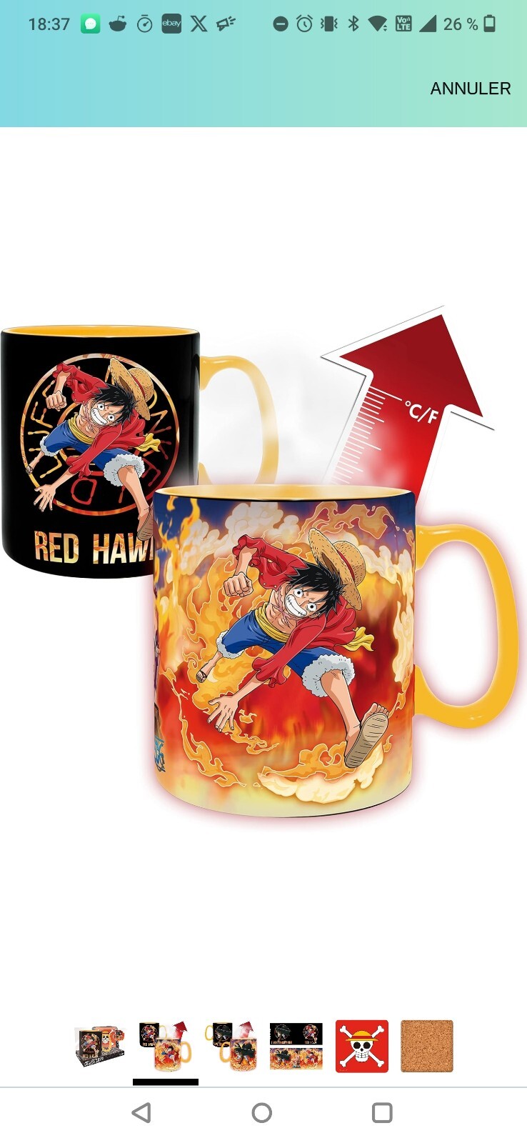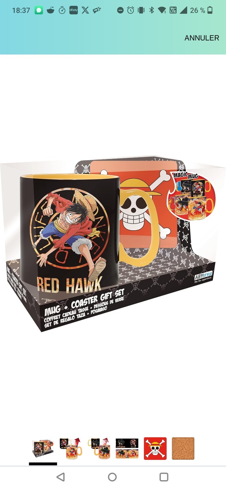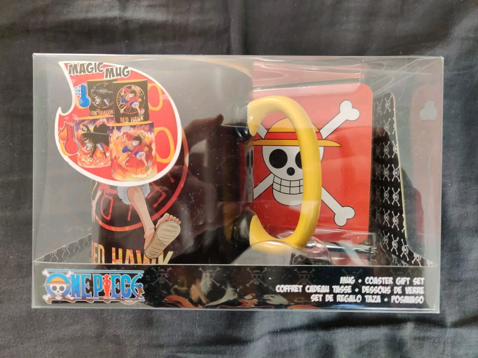 Je mets en vente un coffret cadeau one pièce contenant un Mug thermo-réactif et un Dessous De Verre.