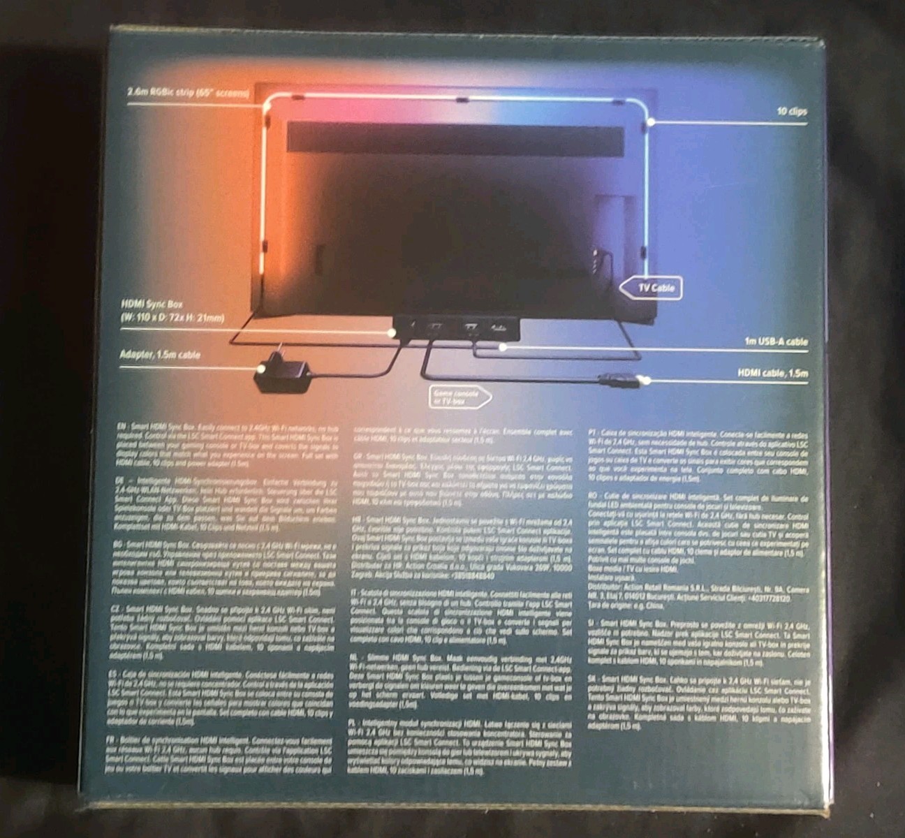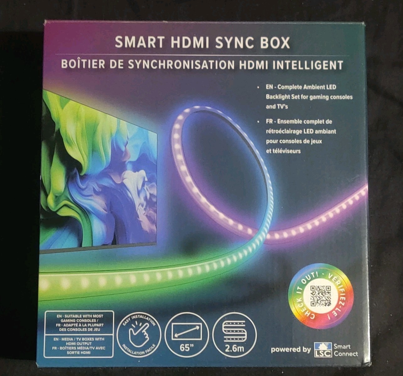 Je mets en vente une Smart HDMI Sync Box, elle permet de connecter l’éclairage led à votre téléviseur et de les synchroniser avec l’image.