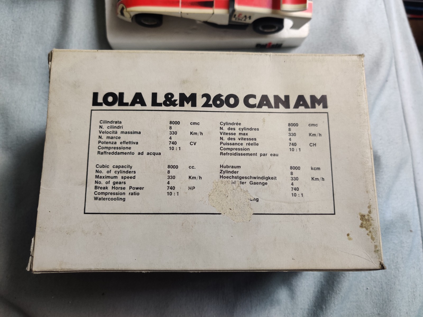 La voiture et la boîte ont de petites traces d’usure mais l’ensemble reste en très bon état vu l’âge.